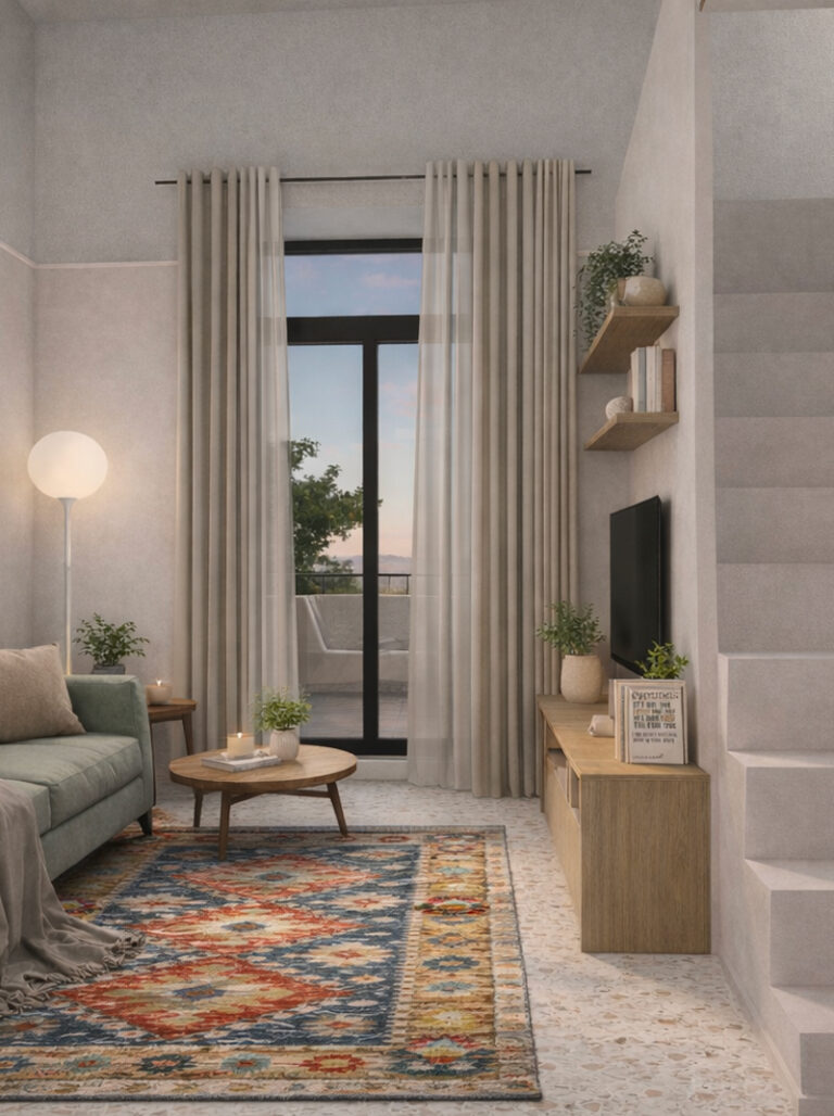 We make urban apartments in the heart of Athens — clean design and modern comforts, built for high living standards.
