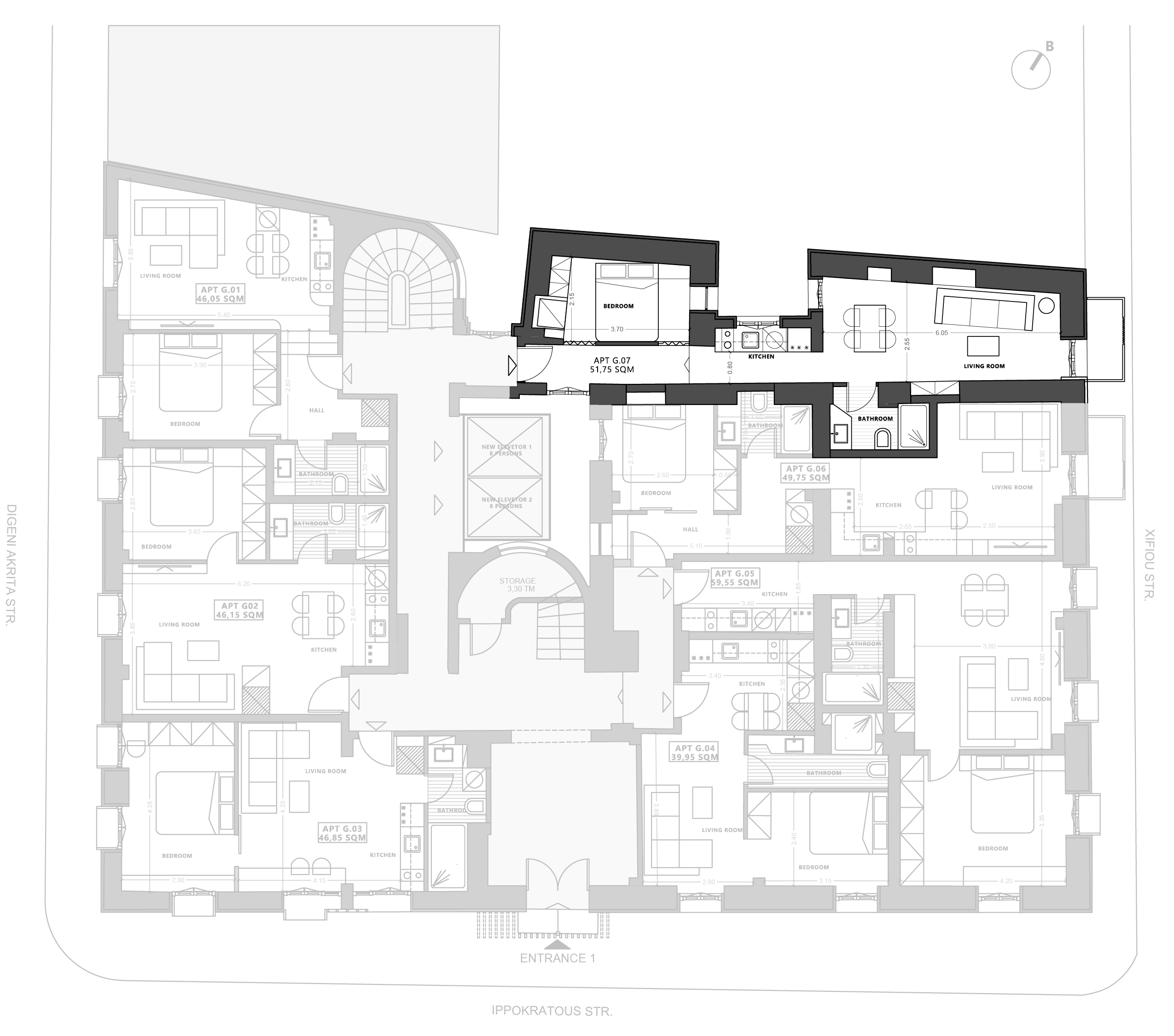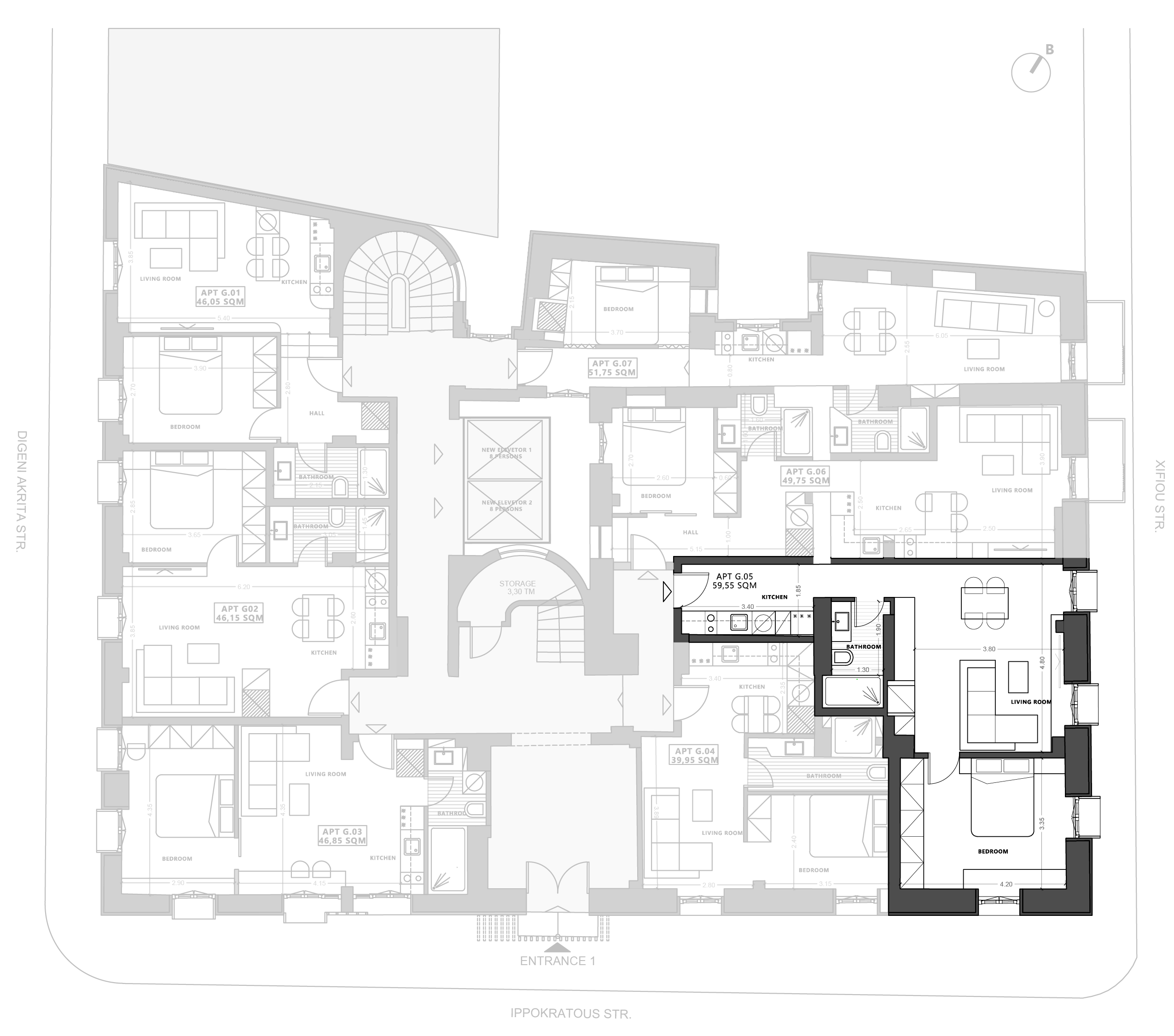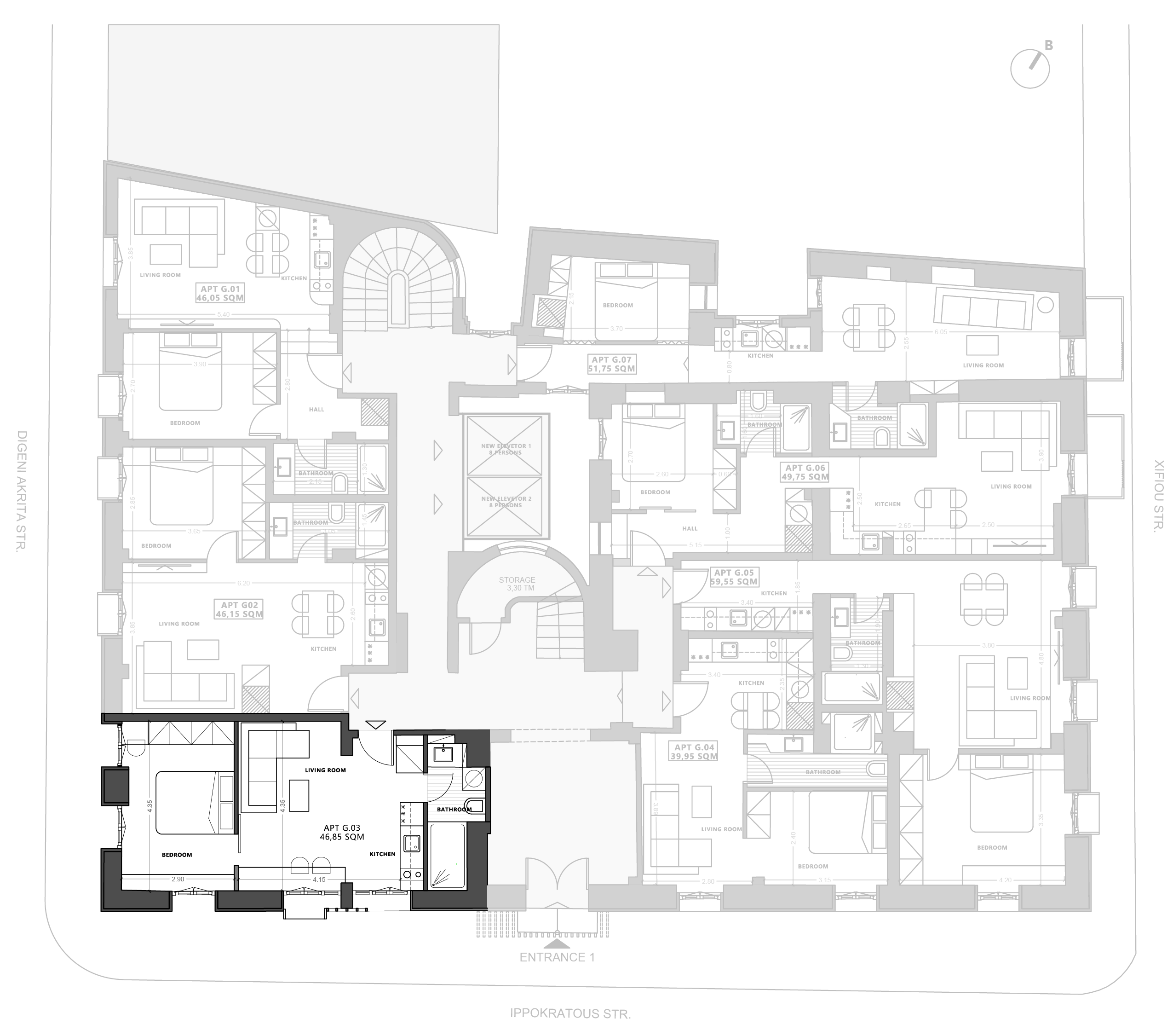 Located on the ground floor, this 39.95 m² one-bedroom penthouse with very high ceiling is currently under construction and offers a bright, modern layout with elevated views. Designed for efficient living, it combines comfort, design and functionality.