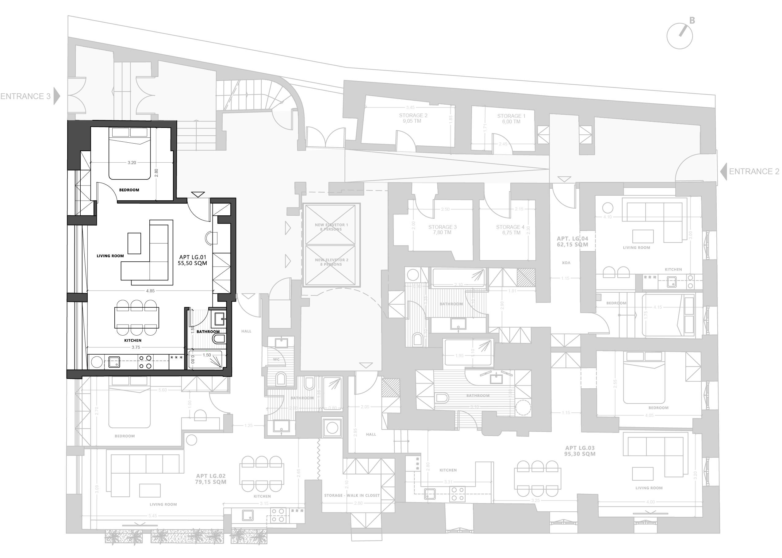 Located on the lower ground floor, this 55.50 m² one-bedroom is currently under construction and offers a bright, modern layout with elevated views. Designed for efficient living, it combines comfort, design and functionality.50